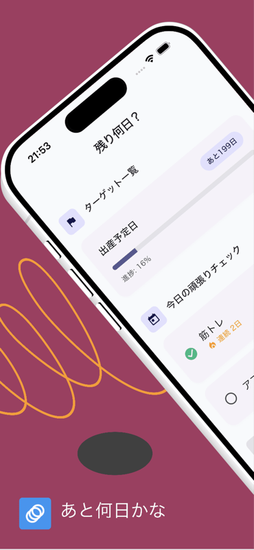 「あと何日かな」は、未来のイベントまでの残り日数をカウントしながら、それに向けた「やりたいこと」「やるべきこと」も一緒に記録・管理できるアプリです。