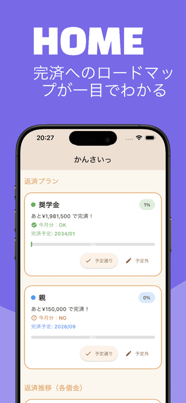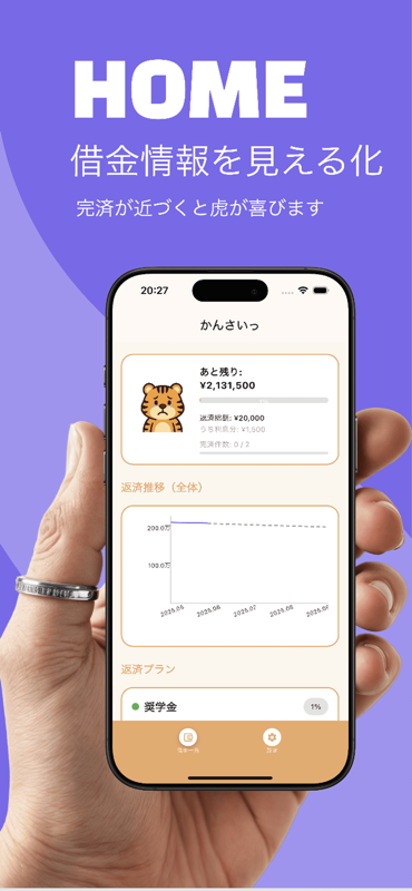 かんさいっは、あなたの借金をかんたん・見える化して、無理なく完済へと導く借金管理アプリです。
