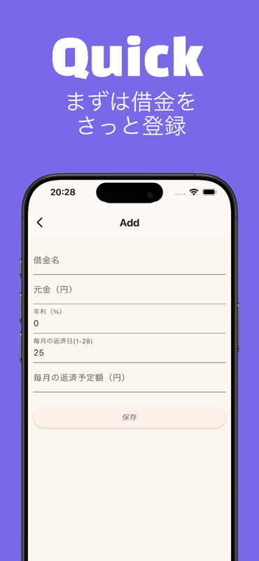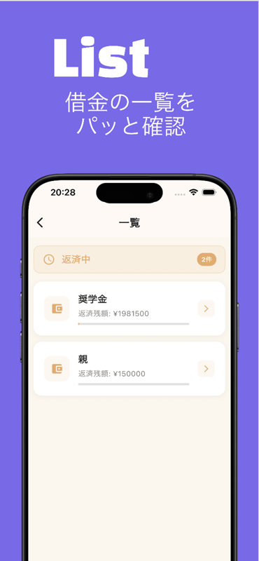 「毎月の返済をもっと前向きに。かんたん操作で借金管理、完済まであと何日?