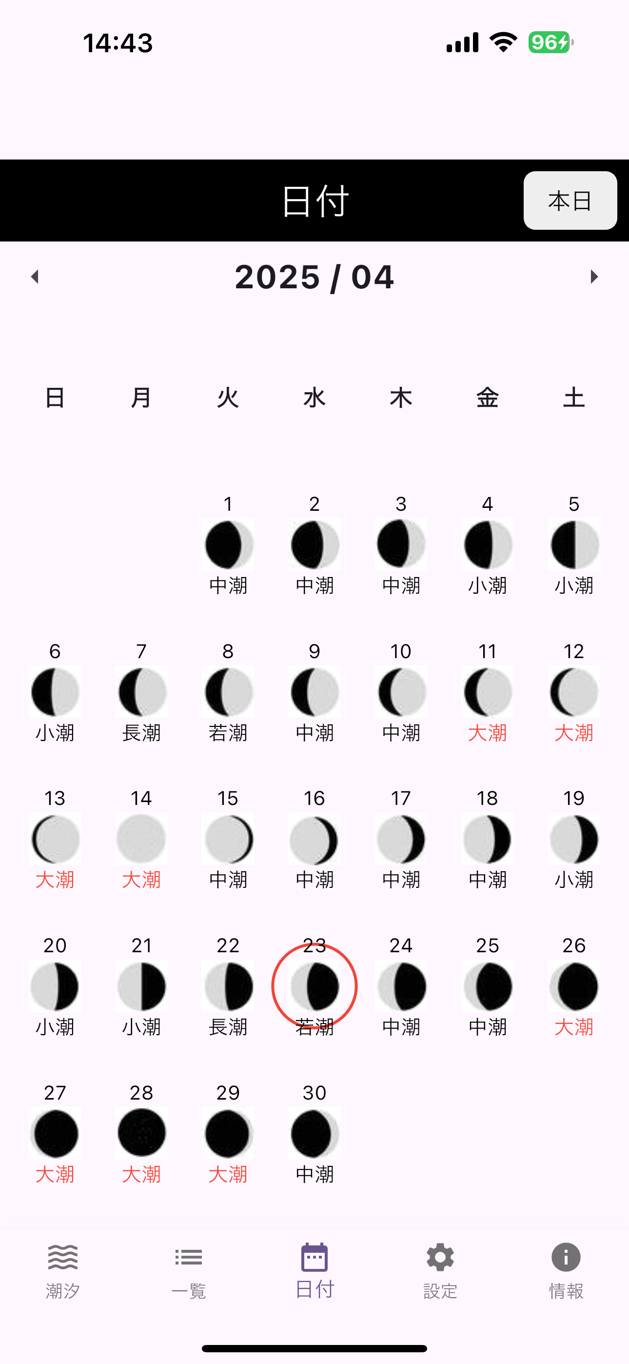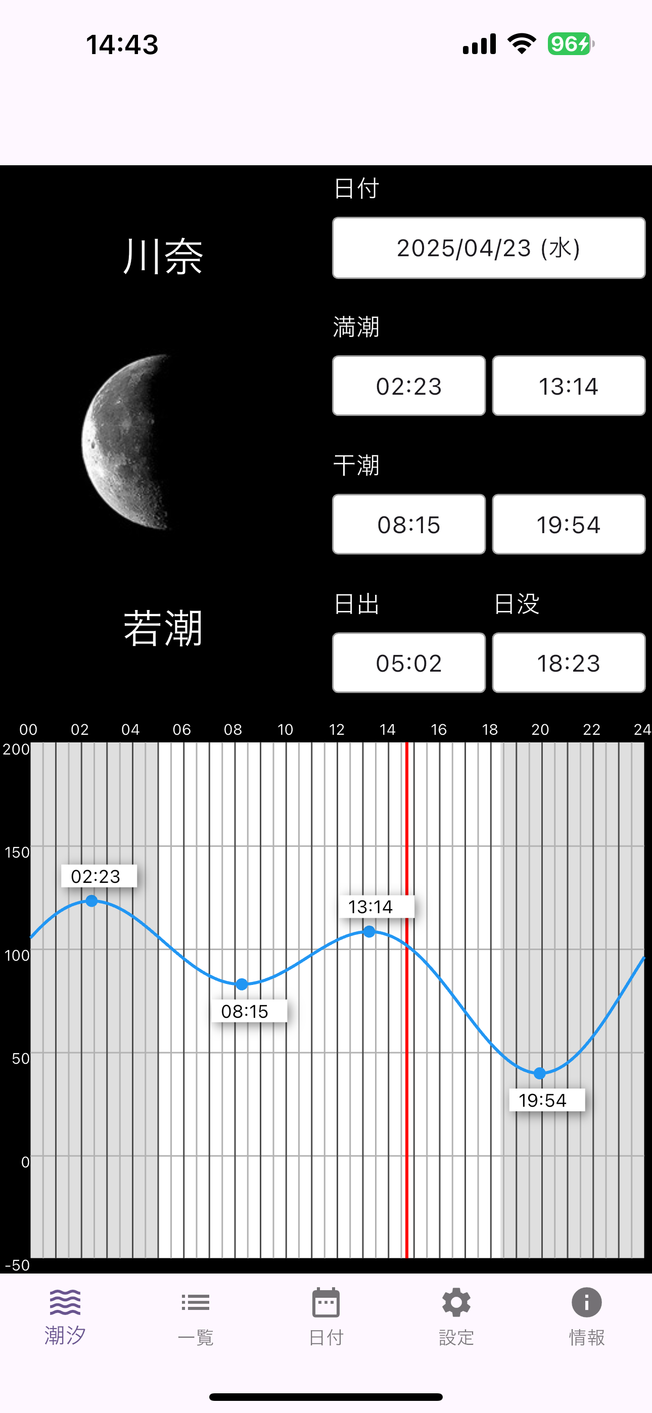 全国の主要な港の指定日時の潮汐や日の出,日の入り時間,月の満ち欠け情報などを表示します。